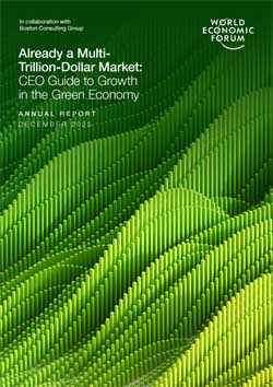 Ein neuer Bericht der Alliance of CEO Climate Leaders des Weltwirtschaftsforums und der Boston Consulting Group (BCG) kommt zu dem Ergebnis, dass die globale grüne Wirtschaft bereits einen Wert von 5 Billionen US-Dollar überschritten hat und bis 2030 voraussichtlich 7 Billionen US-Dollar übersteigen wird. In den letzten zehn Jahren war sie der am zweitschnellsten wachsende Sektor, nur übertroffen von der Technologiebranche. Der Bericht mit dem Titel ÑAlready a Multi-Trillion-Dollar Market: CEO Guide to Growth in the Green Economy” (Bereits ein Multi-Billionen-Dollar-Markt: Leitfaden für CEOs zum Wachstum in der grünen Wirtschaft) beschreibt, wie Unternehmen, die sich für kohlenstoffarme und resiliente Lösungen einsetzen, oft ein über dem Markt liegendes Wachstum erzielen, kostengünstigeres Kapital anziehen und höhere Bewertungen erzielen.